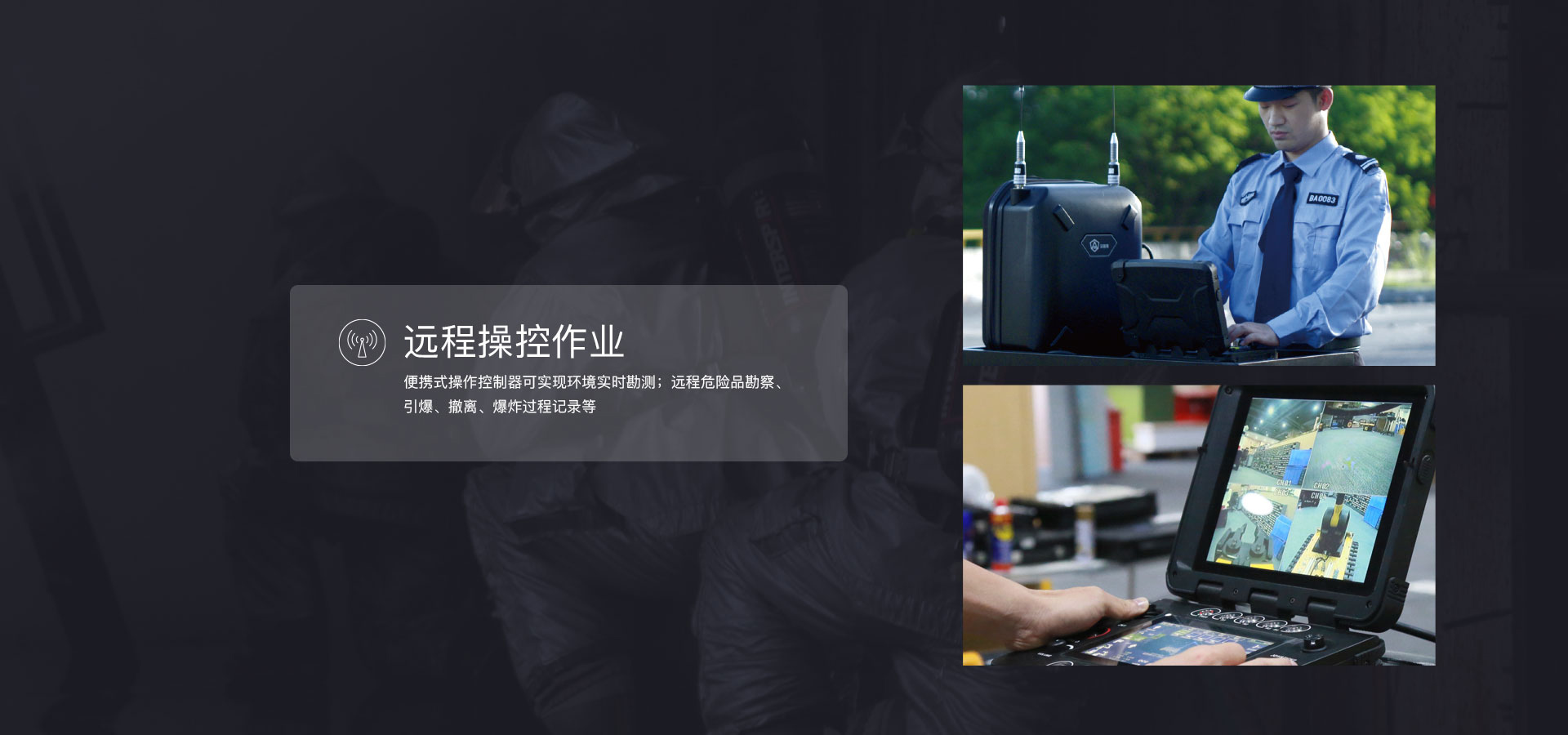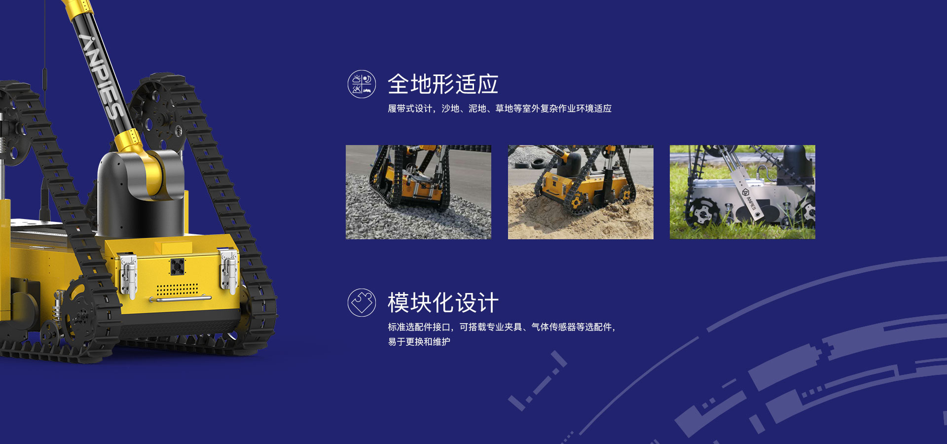 主要(yào)用(yòng)于危險物(wù)品抓取、轉移、銷毀等作(zuò)業(yè),完成排爆除險、特警防爆、危險品處置等用(yòng)λ途的(de)專用(yòng)移動機(jī)器(qì)人(rén)産品,可(kě)以完成危險性高(gāo)、随機(jī)性大(dà)<、現(xiàn)場(chǎng)情況複雜(zá)多(duō)變的(de)任務,協助警務和(hé)特勤人(rén)員(yuán)遠(yuǎn)程操作(zuò)完成危險作(zuò)業(yè)任£務,有(yǒu)效保障警務人(rén)員(yuán)人(rén)身(shēn)安全。采用(yòng)獨創行(xíng)星翻轉臂結構履帶式底盤,可(kě)自(zì)由改變機(jī)體(tǐ)作(zuò)業(yè)的(de)角度及重心,能(néng)夠攀爬樓梯、跨越溝渠,可(kě)适應沙地(dì)、瓦礫、草(cǎo)地(dì)等 多(duō)種複雜(zá)地(dì)形。