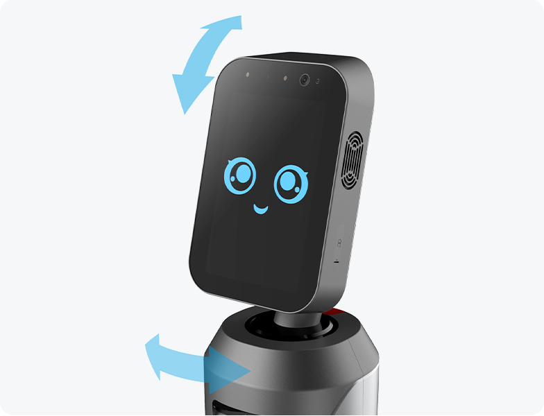 擁有(yǒu)10.1Inch超高(gāo)清屏幕,集合了(le)攝像頭模組、麥克風(fēng)、揚聲器(qì)、Sim卡槽。整個(gè)頭部由270γ°自(zì)由旋轉的(de)雲台支撐。